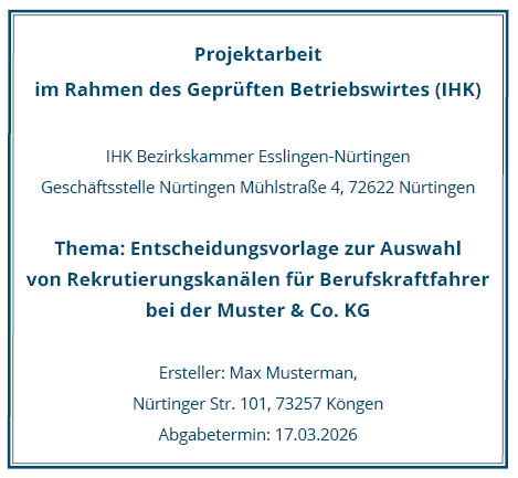 Die Hardcover-Bindung ist erhältlich in den Farben Blau, Weinrot und Schwarz – drei klassische Töne, die deiner Arbeit eine repräsentative, professionelle Optik verleihen. Auf Wunsch prägen wir deinen Titel zweizeilig in Silber oder Gold direkt auf das Cover – persönlich, hochwertig und perfekt für dein Portfolio oder als Erinnerungsstück.
